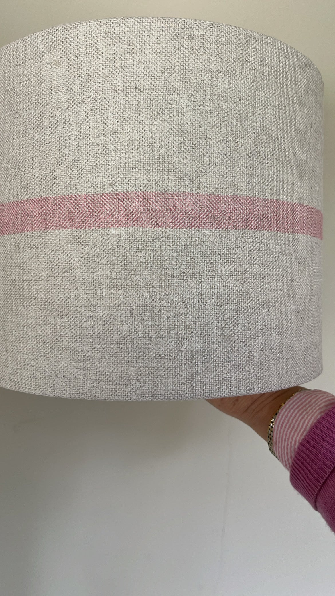 Gorgeous Capri Stripe in French Blossom on Grainsack linen. One piece 52 cm w x 100 cm l. One gorgeous pink stripe running through the length of the fabric.